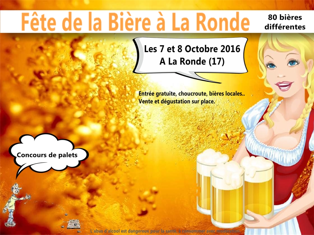Le comité des fêtes La Ronde en Fêtes organise une Fête de la Bière les vendredi 07 et samedi 08 octobre 2016, de 16h à minuit, à l'espace multi-pôle de La Ronde (17170).